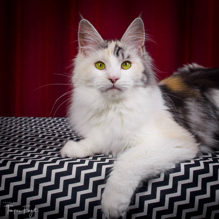 Scarlet is een vrolijke dame, die regelmatig kwispelt met haar staart, onder begeleiding van vocaal geweld. Heerlijk kind, wij zijn gek op haar eigenzinnigheid. Ze kan heel arrogant kijken, maar dat zien we niet terug in haar karakter. Haar velletje lijkt op dat van Patch, maar er zit gewoon 13 jaar tussen.